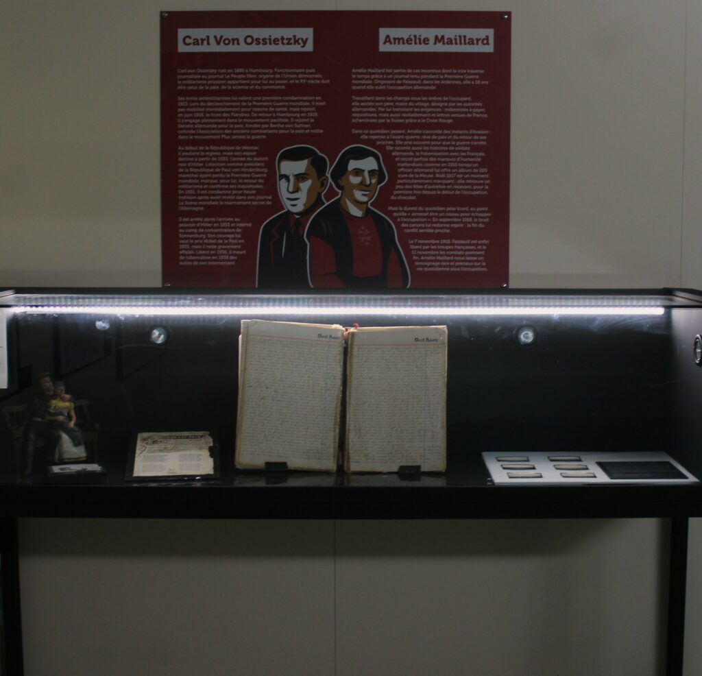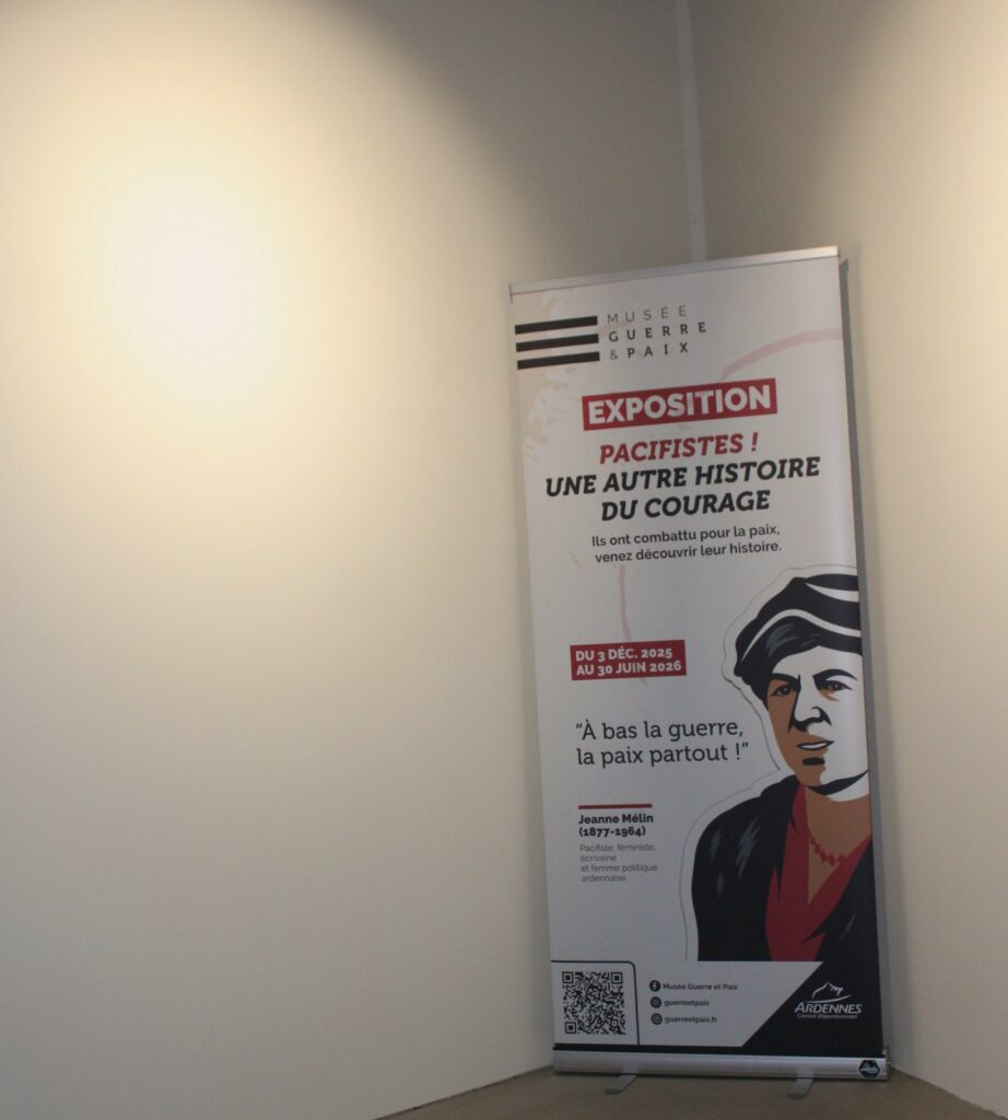 Au Musée Guerre et Paix (Novion-Porcien, Ardennes), l’exposition Pacifistes ! Une autre histoire du courage (du mercredi 3 décembre 2025 au mardi 30 juin 2026) propose une relecture du pacifisme européen entre la fin du XIXᵉ siècle et l’entre-deux-guerres.